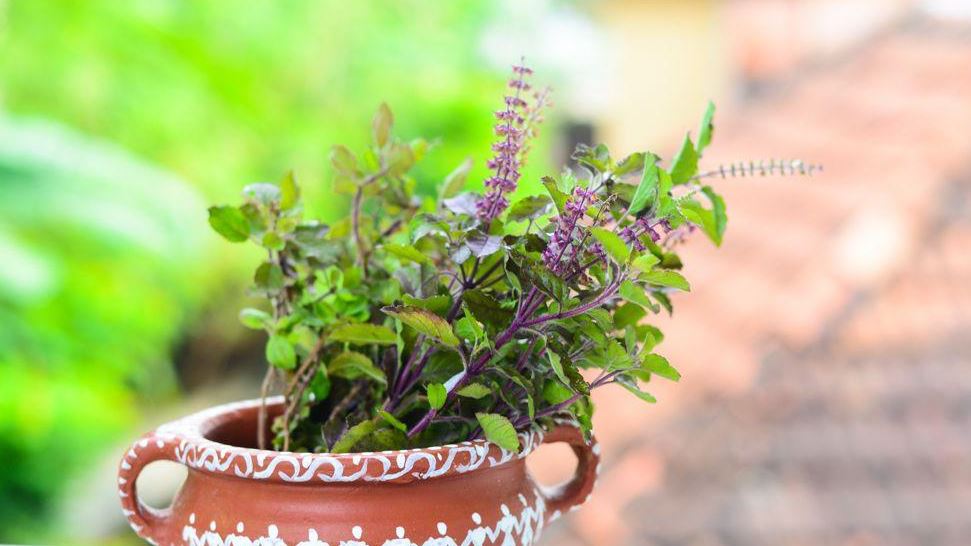 துளசி ஆன்மீக முக்கியத்துவம் கொண்ட செடி. இது வீட்டில் நல்ல ஆற்றலை அதிகரித்து, எதிர்மறை சக்திகளை குறைக்கும் என நம்பப்படுகிறது. அதிக சூரியஒளி மற்றும் ஈரமான மண் அவசியம்.